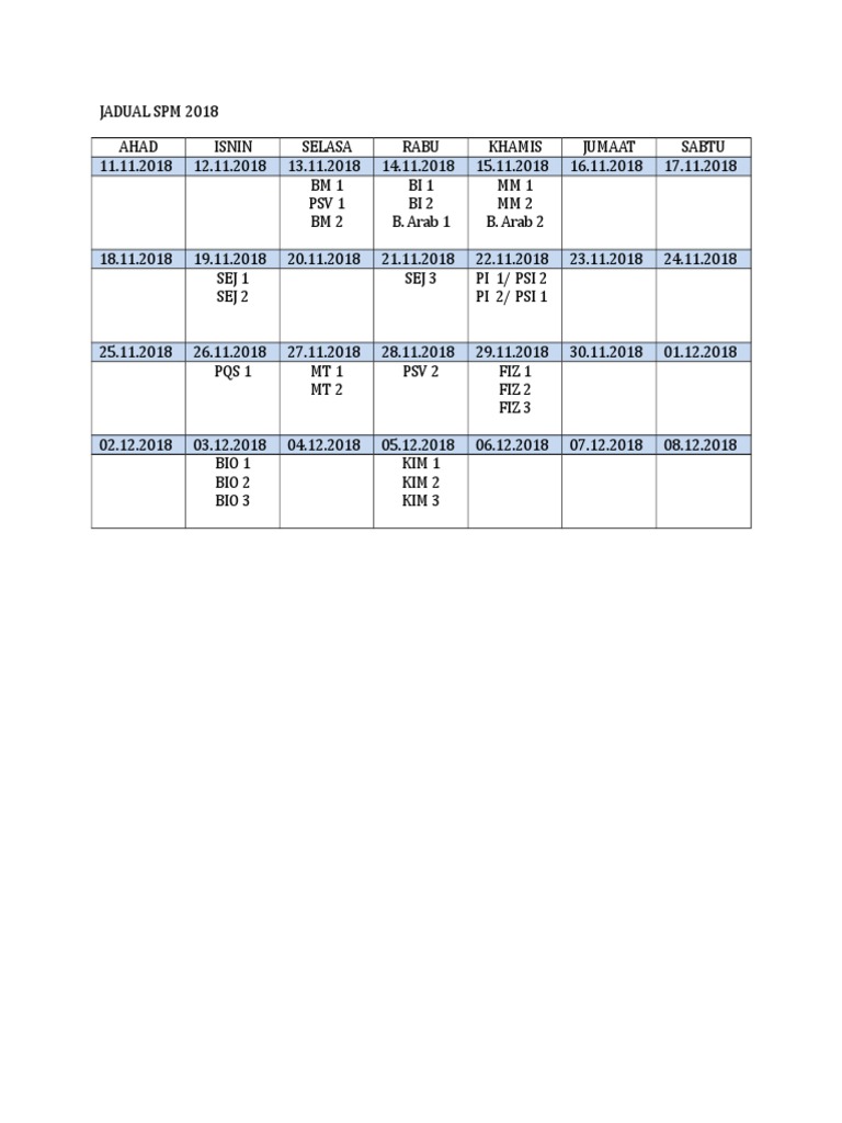 Source: www.infoupu.com Jadual waktu peperiksaan sijil pelajaran malaysia 2018 2018 © hak cipta kerajaan malaysia lembaga peperiksaan kementerian pendidikan malaysia lp/spm/2018.